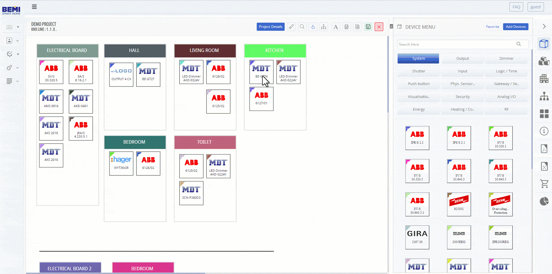 KNX Tool`un kullanımı kolay proje panosunu ve Çevrimiçi Cihaz ve Fonksiyon Kataloğunu kullanarak KNX cihaz yapılandırmasını özelleştirin. Cihaz Satış Fiyatı, Net Fiyat, Programlama Süresi vb. gibi gerekli tüm bilgileri ekleyin.