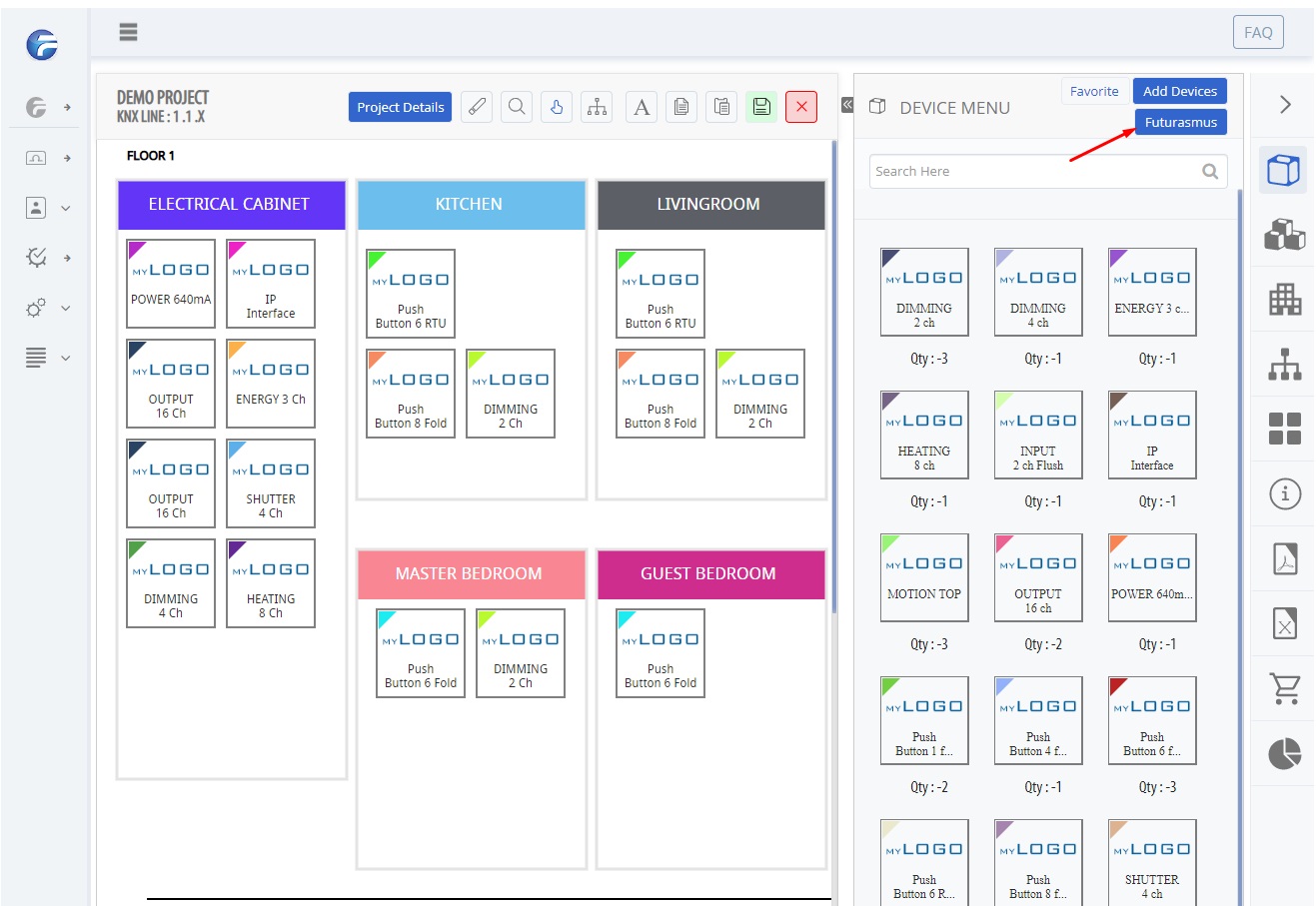 KNX Aracı'nda (Futurasmus sekmesi) kullanmak istediğiniz cihazları seçin. 4