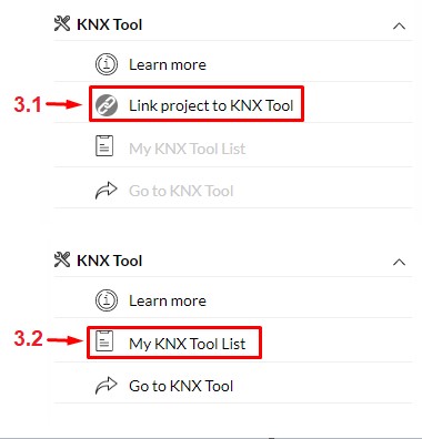 Projeyi KNX Tool'a bağlayın ve KNX Tool listesini açın 3