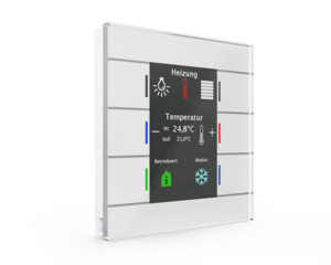 Glass push button II SMART, 4/6/8/12-fold, colored display and RGB status indicator.